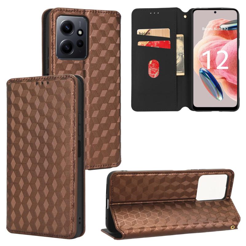 For Redmi Note 12 4G Global Cubic Grid Texture Flip Leather Phone Case(Brown)