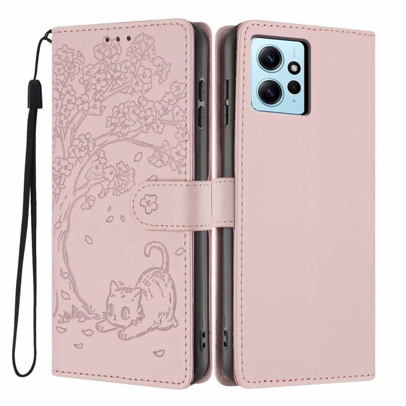 For Redmi Note 12 4G Global Tree Cat Embossed Flip Vegan Leather Phone Case(Rose Gold)