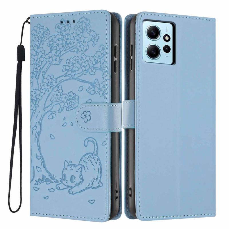 For Redmi Note 12 4G Global Tree Cat Embossed Flip Vegan Leather Phone Case(Sky Blue)