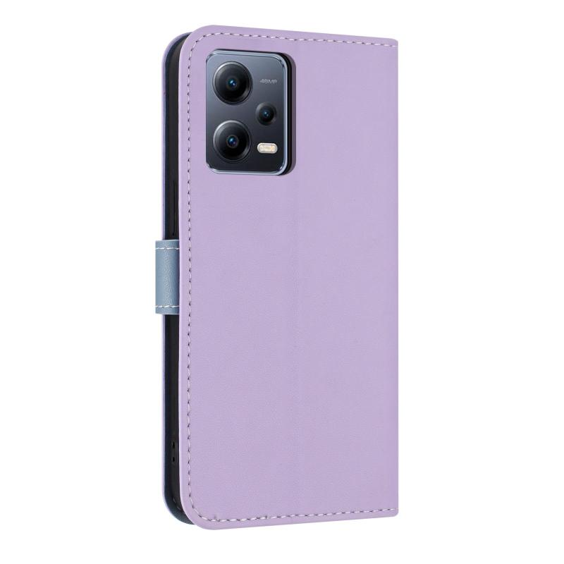 For Redmi Note 12 5G / Poco X5 Metal Bow Leather Phone Case with Hand Strap(Purple)