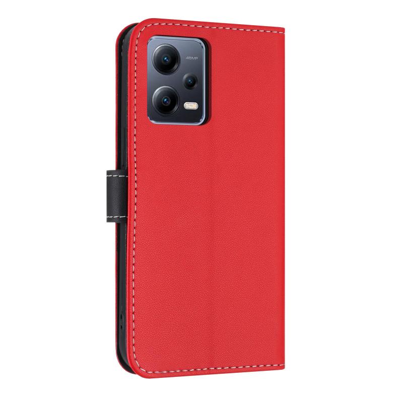 For Redmi Note 12 5G / Poco X5 Metal Bow Leather Phone Case with Hand Strap(Red)