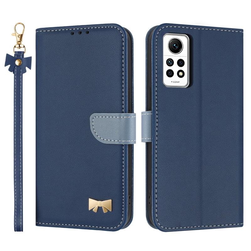 For Redmi Note 12 Pro 4G Global Metal Bow Leather Phone Case with Hand Strap(Dark Blue)