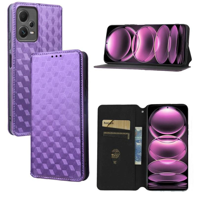 For Redmi Note 12 Pro 5G Global Cubic Grid Texture Flip Leather Phone Case(Purple)