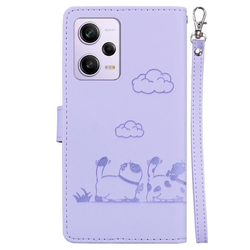 For Redmi Note 12 Pro 5G Global Cute Cats RFID Leather Phone Case(Purple)