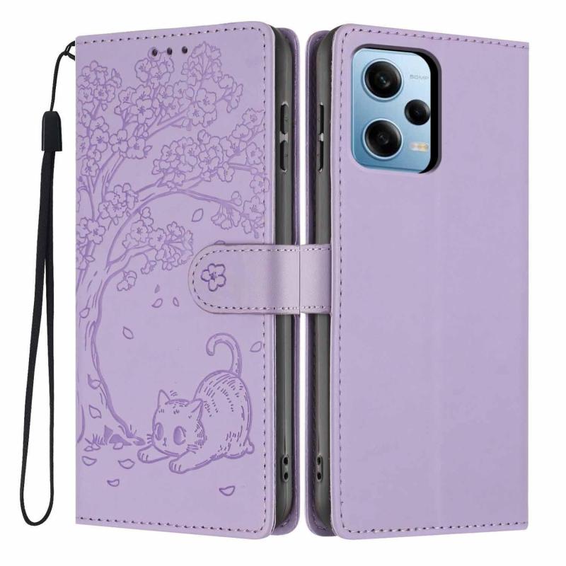 For Redmi Note 12 Pro 5G Global Tree Cat Embossed Flip Vegan Leather Phone Case(Purple)