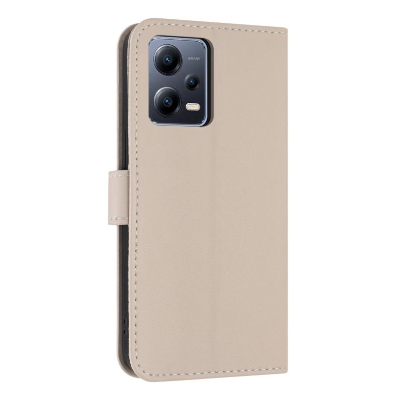 For Redmi Note 12 Pro 5G Metal Bow Leather Phone Case with Hand Strap(Apricot)