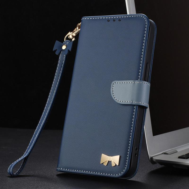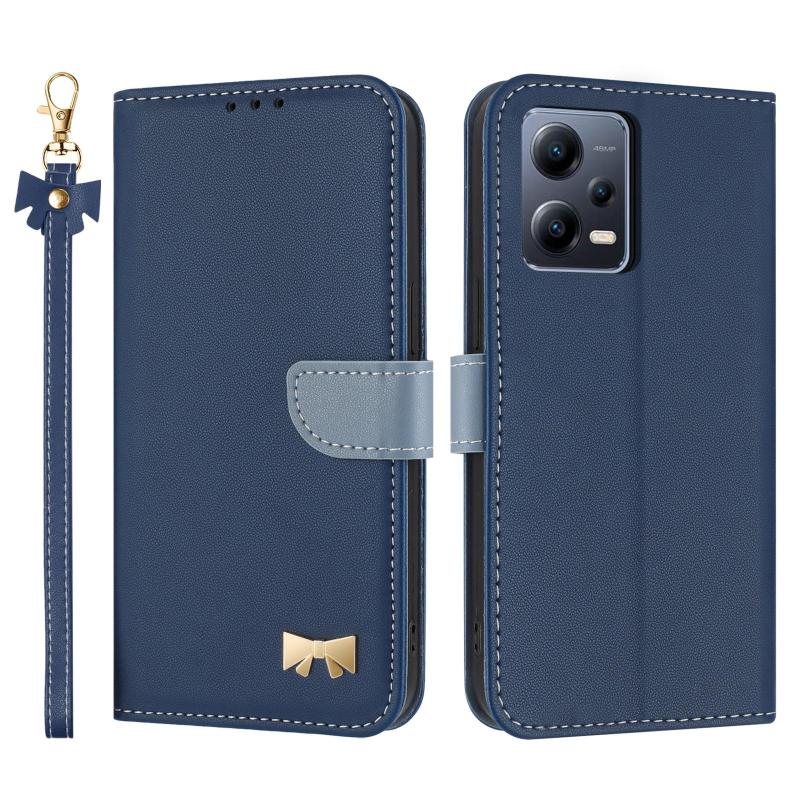 For Redmi Note 12 Pro 5G Metal Bow Leather Phone Case with Hand Strap(Dark Blue)