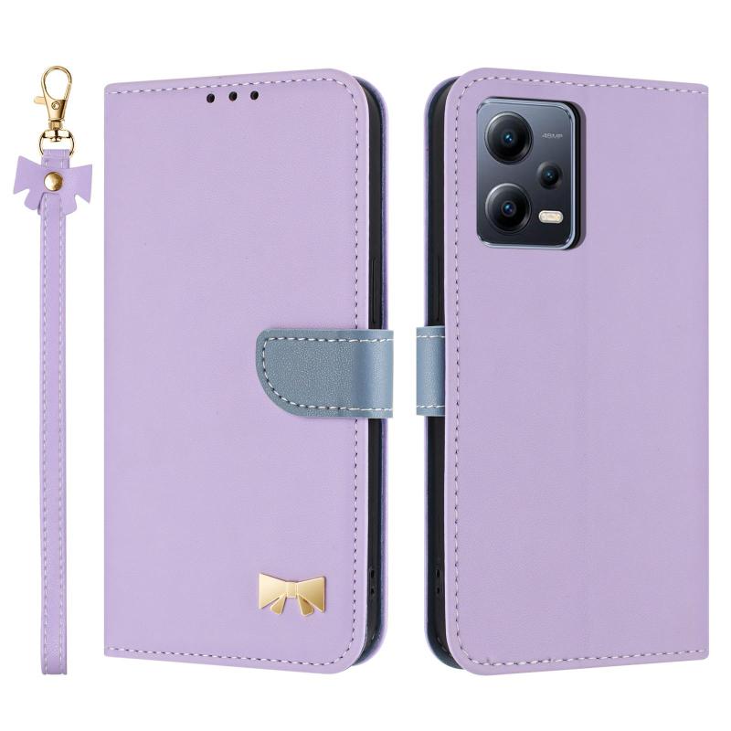 For Redmi Note 12 Pro+ 5G Metal Bow Leather Phone Case with Hand Strap(Purple)