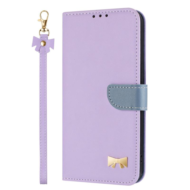 For Redmi Note 12 Pro 5G Metal Bow Leather Phone Case with Hand Strap(Purple)