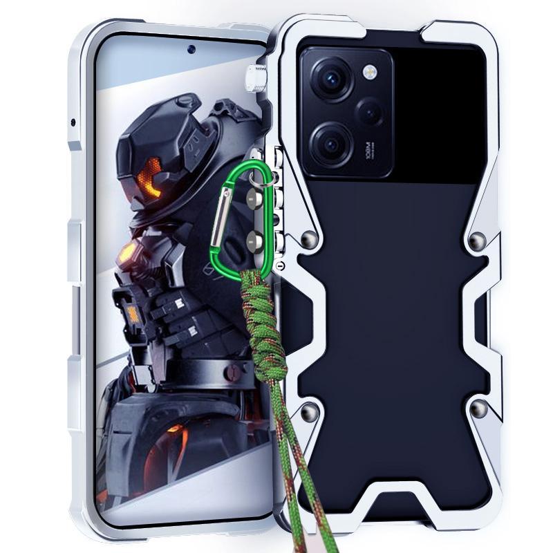 For Redmi Note 12 Pro Speed Trigger Design Hollow Metal Frame Phone Case with Lanyard(Silver)