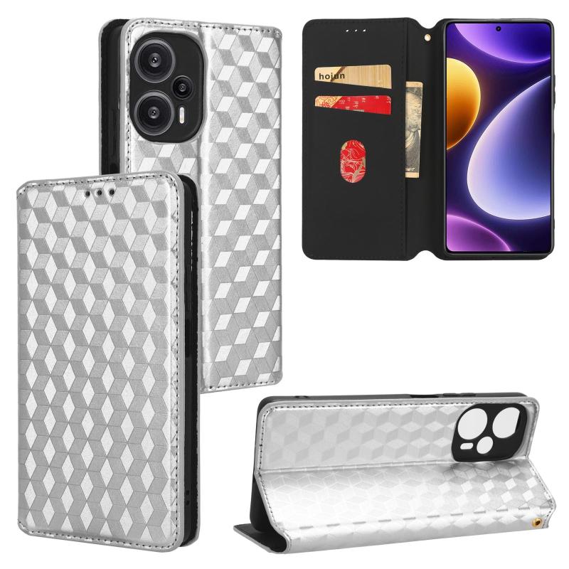 For Redmi Note 12 Turbo 5G Cubic Grid Texture Flip Leather Phone Case(Silver)