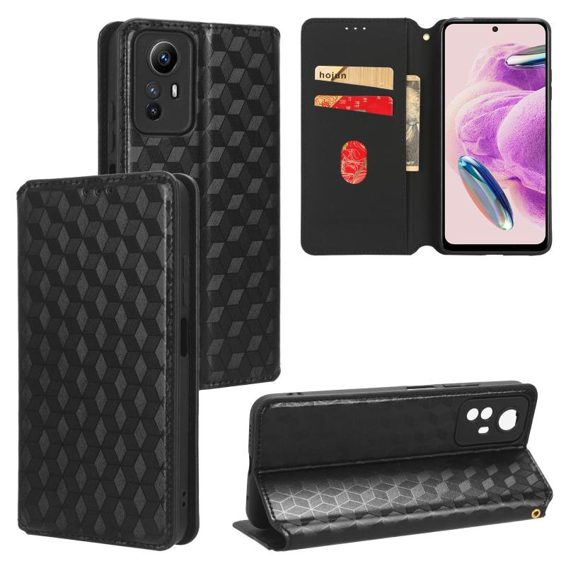 For Redmi Note 12S 4G Global Cubic Grid Texture Flip Leather Phone Case(Black)