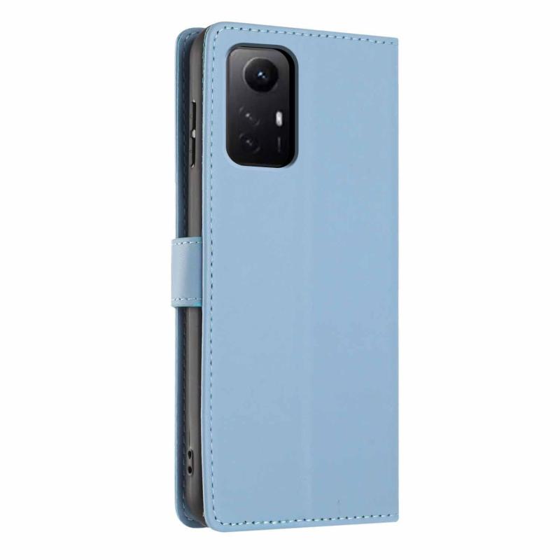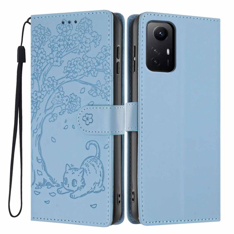 For Redmi Note 12S Tree Cat Embossed Flip Vegan Leather Phone Case(Sky Blue)