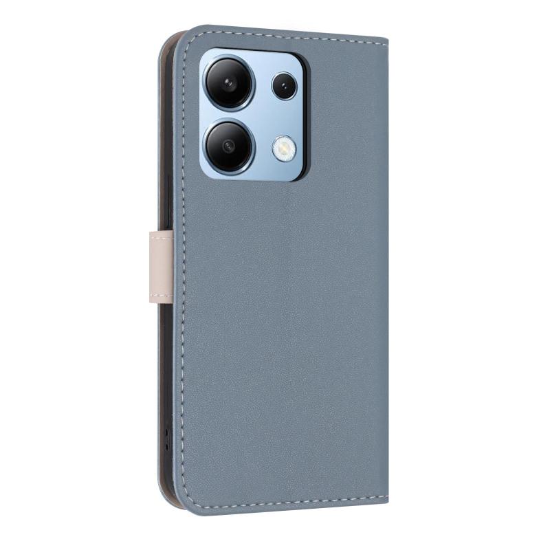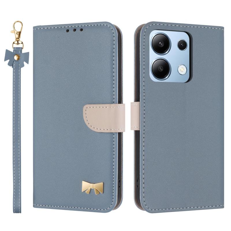 For Redmi Note 13 4G Global Metal Bow Leather Phone Case with Hand Strap(Light Blue)