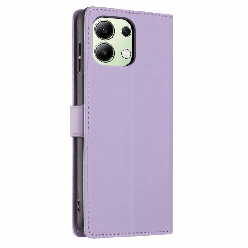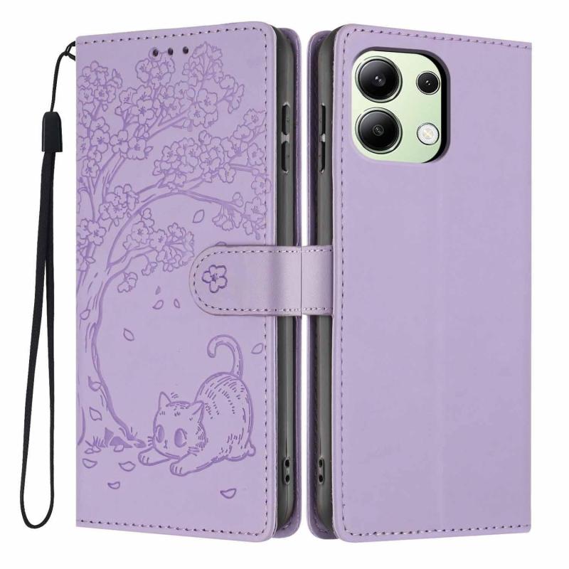 For Redmi Note 13 4G Tree Cat Embossed Flip Vegan Leather Phone Case(Purple)