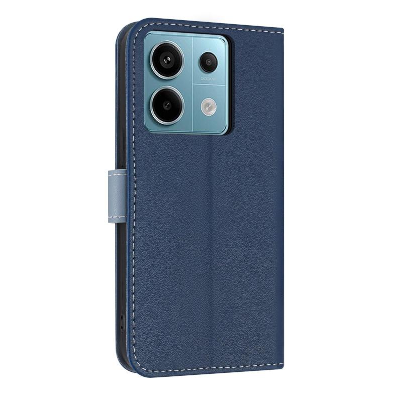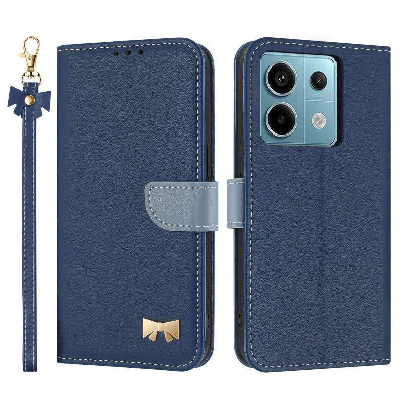 For Redmi Note 13 5G Metal Bow Leather Phone Case with Hand Strap(Dark Blue)