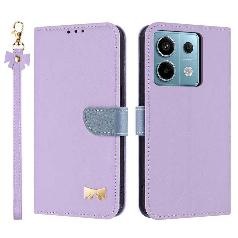 For Redmi Note 13 5G Metal Bow Leather Phone Case with Hand Strap(Purple)