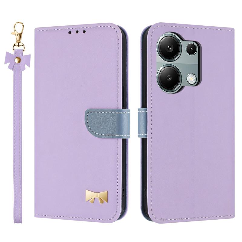 For Redmi Note 13 Pro 4G Global Metal Bow Leather Phone Case with Hand Strap(Purple)