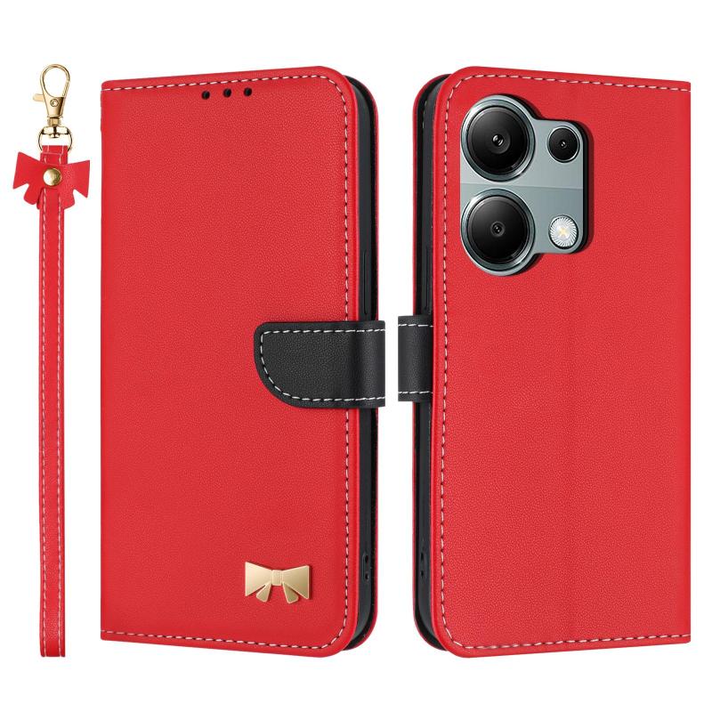 For Redmi Note 13 Pro 4G Global Metal Bow Leather Phone Case with Hand Strap(Red)