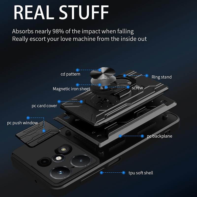 For Redmi Note 13 Pro 4G Sliding Camshield TPU+PC Phone Case with Card Slot(Red)