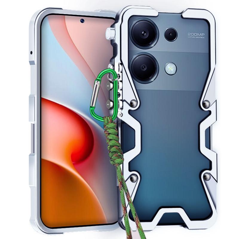 For Redmi Note 13 Pro 4G Trigger Design Hollow Metal Frame Phone Case with Lanyard(Silver)