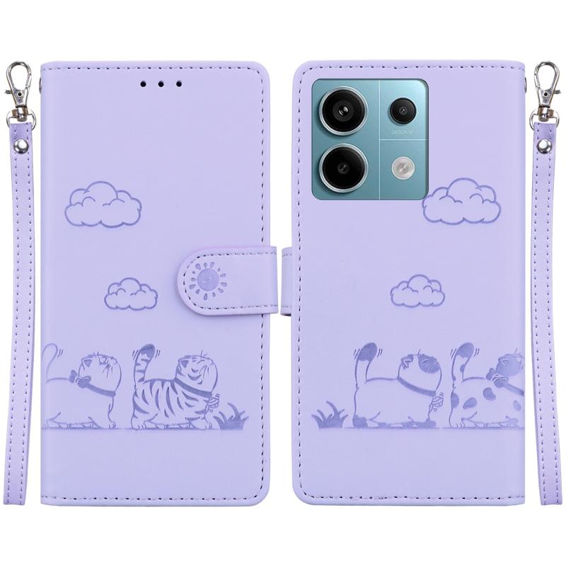 For Redmi Note 13 Pro 5G Cute Cats RFID Leather Phone Case(Purple)