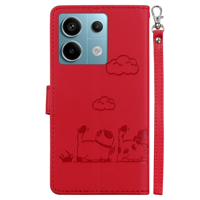 For Redmi Note 13 Pro 5G Cute Cats RFID Leather Phone Case(Red)