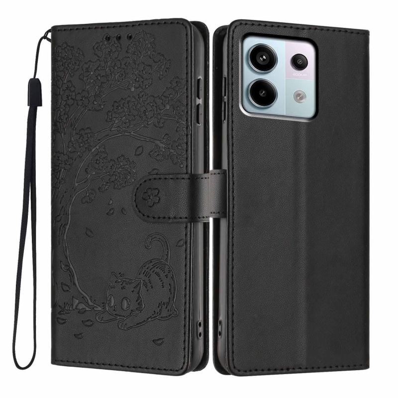 For Redmi Note 13 Pro 5G Tree Cat Embossed Flip Vegan Leather Phone Case(Black)