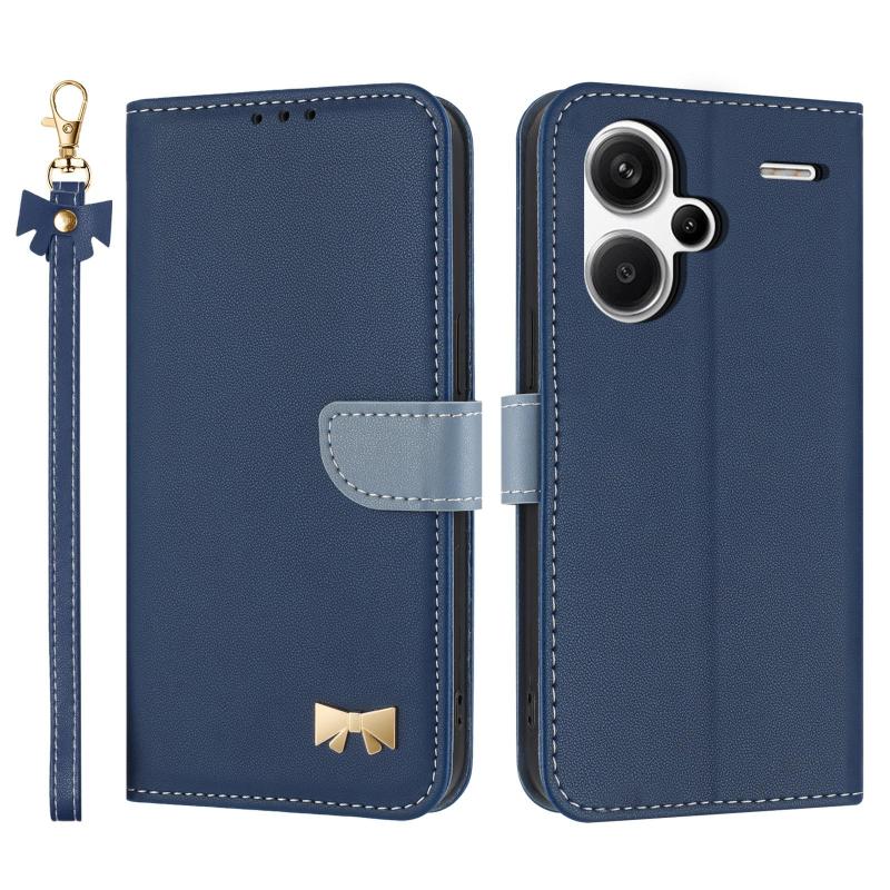 For Redmi Note 13 Pro+ Metal Bow Leather Phone Case with Hand Strap(Dark Blue)