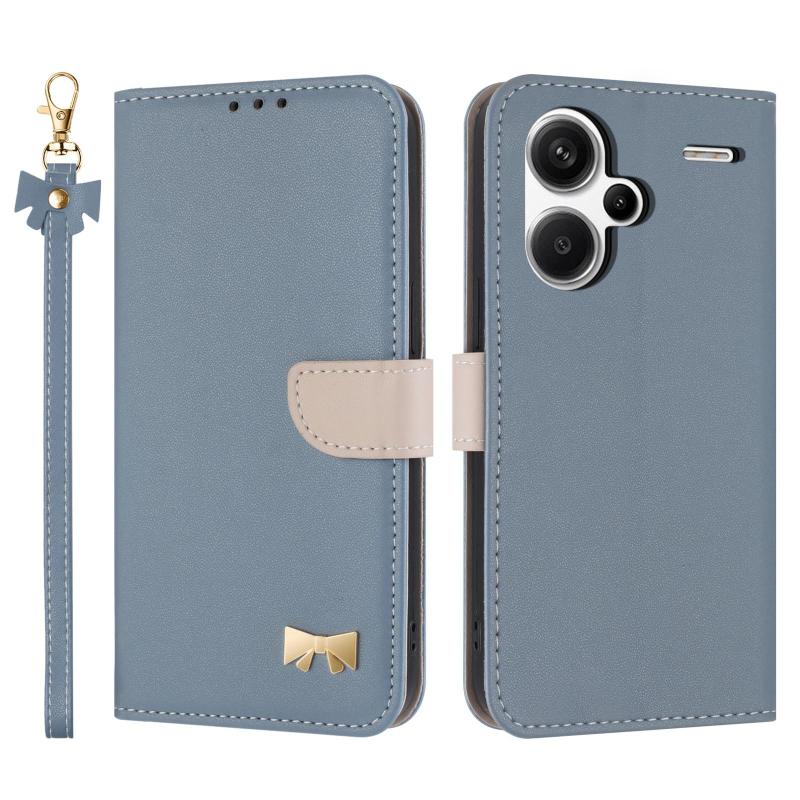 For Redmi Note 13 Pro+ Metal Bow Leather Phone Case with Hand Strap(Light Blue)