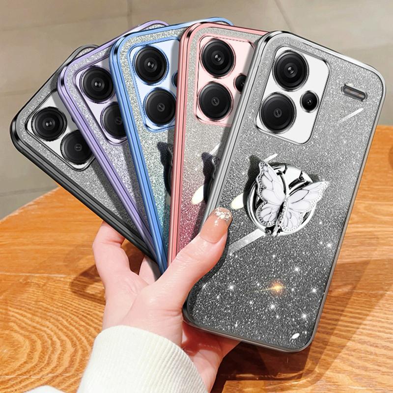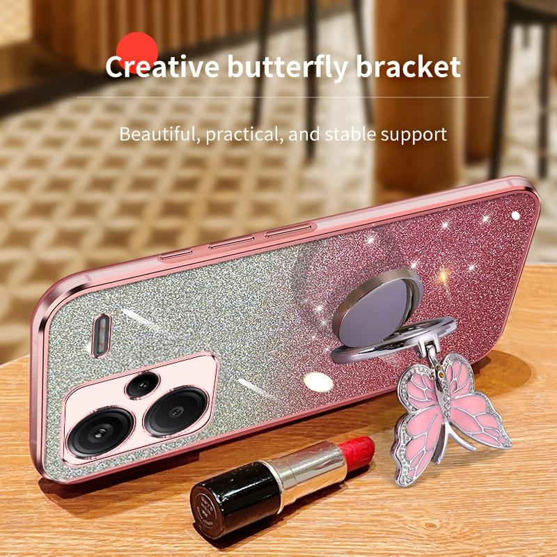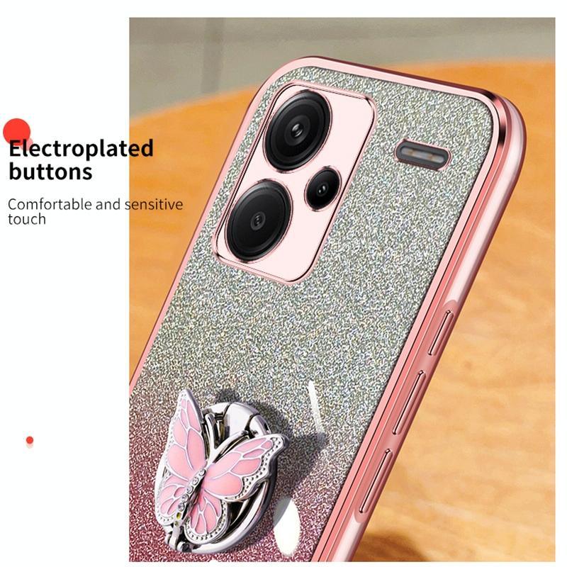 For Redmi Note 13 Pro+ Plated Gradient Glitter Butterfly Holder TPU Phone Case(Silver)