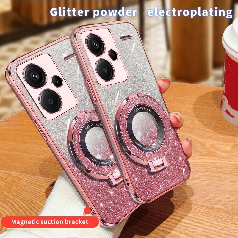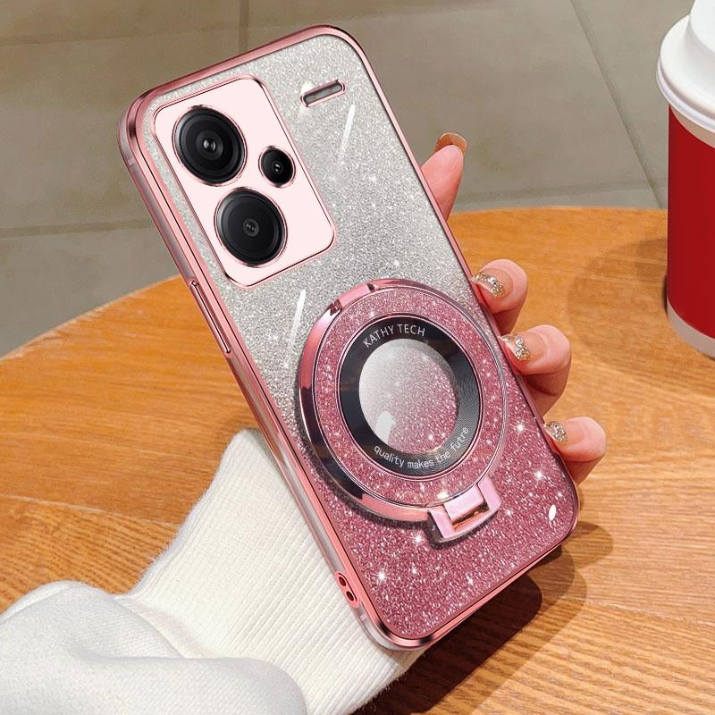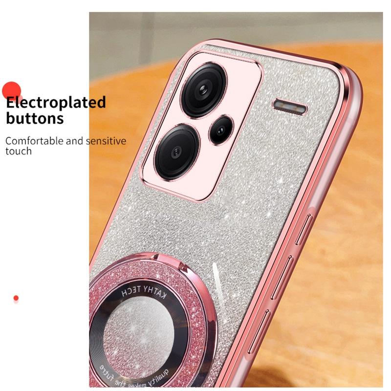 For Redmi Note 13 Pro+ Plated Gradient Glitter Round Holder TPU Phone Case(Pink)