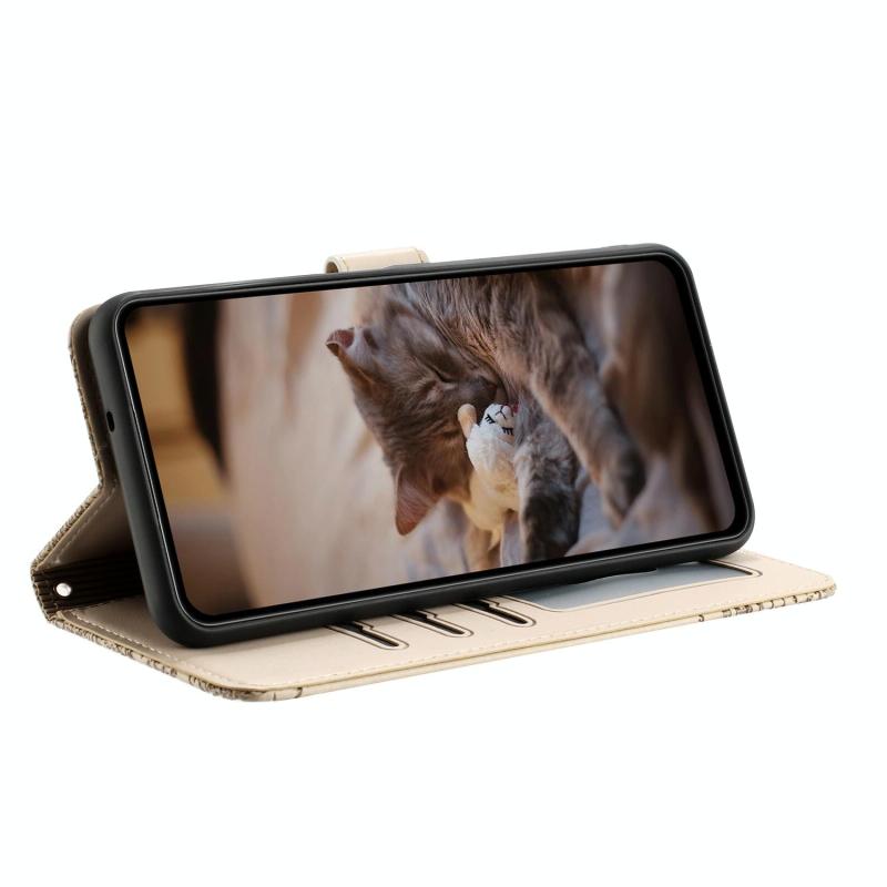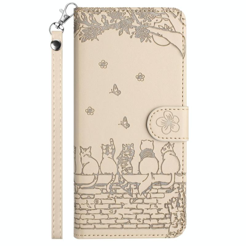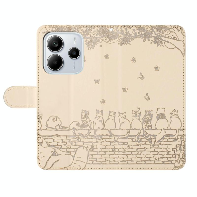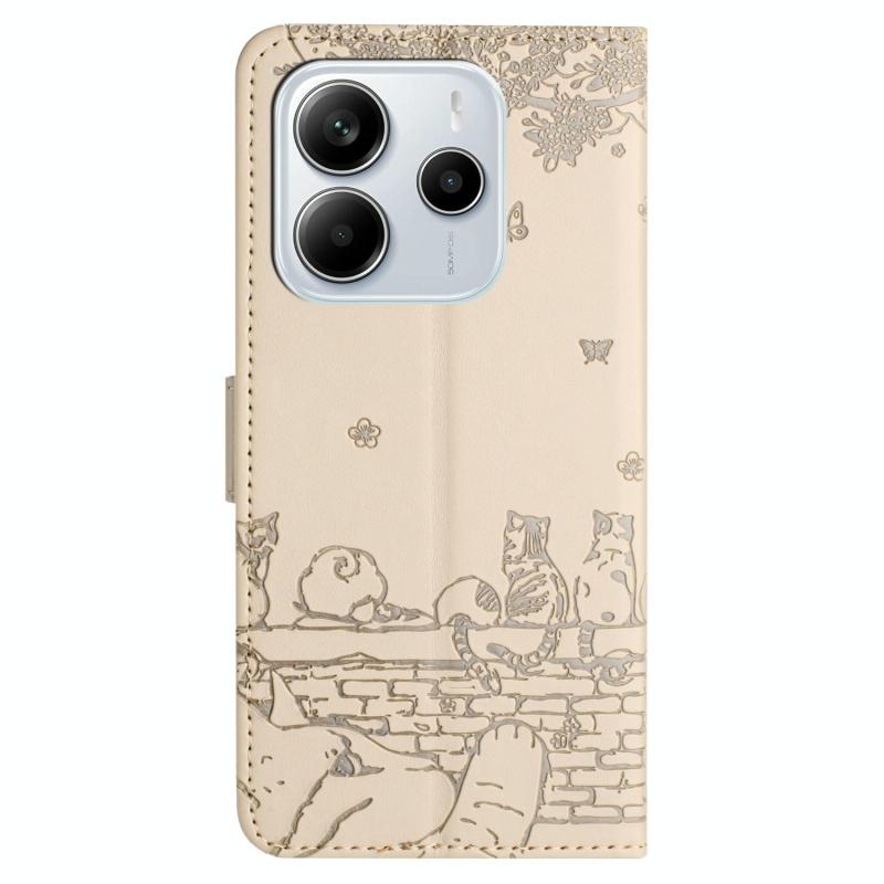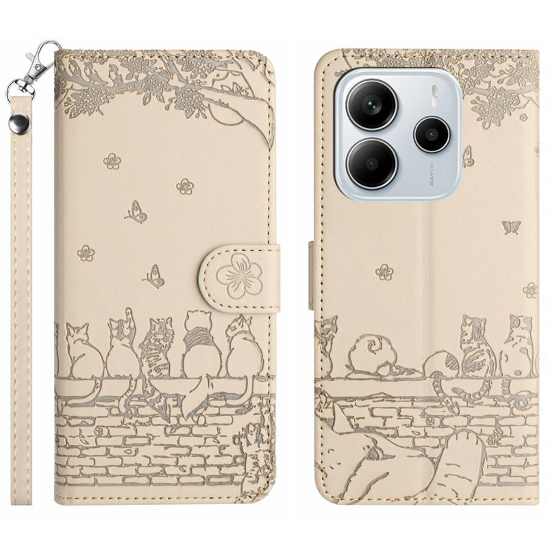 For Redmi Note 14 4G 163.25mm Cat Embossing Pattern Leather Phone Case with Lanyard(Beige)