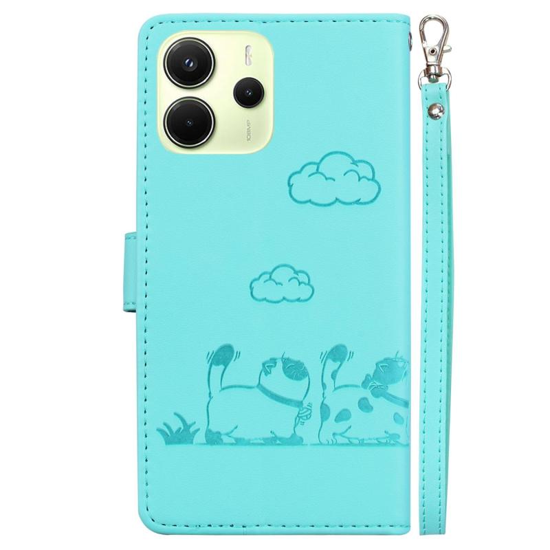 For Redmi Note 14 4G 163.25mm Cute Cats RFID Leather Phone Case(Green)