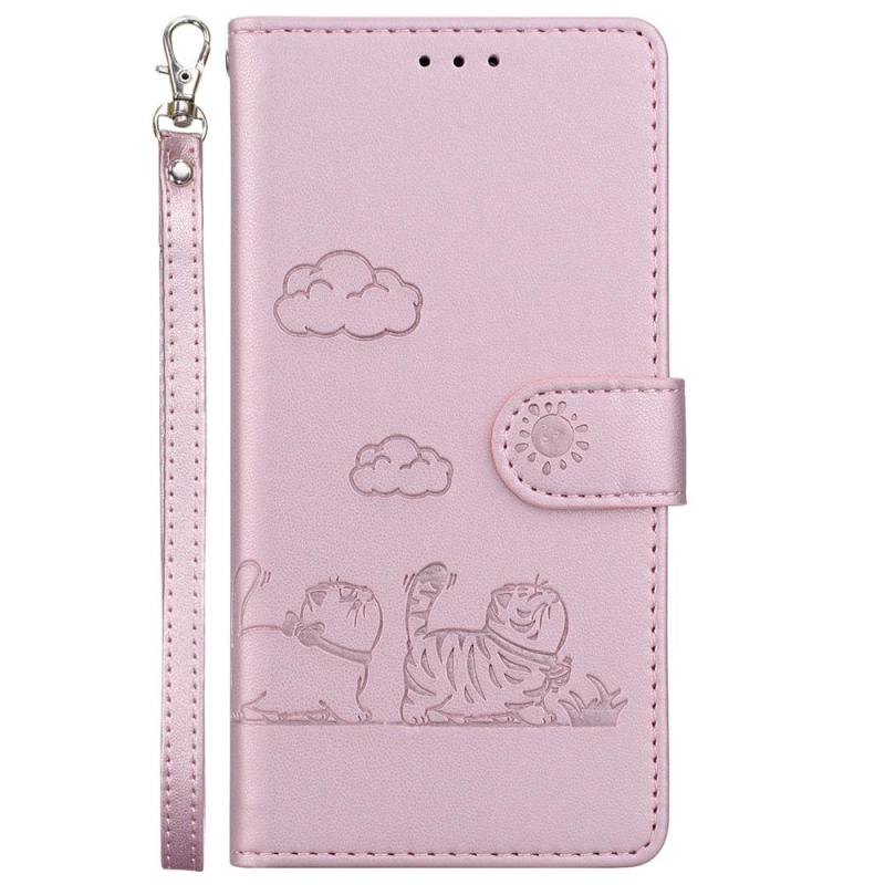 For Redmi Note 14 4G 163.25mm Cute Cats RFID Leather Phone Case(Rose Gold)