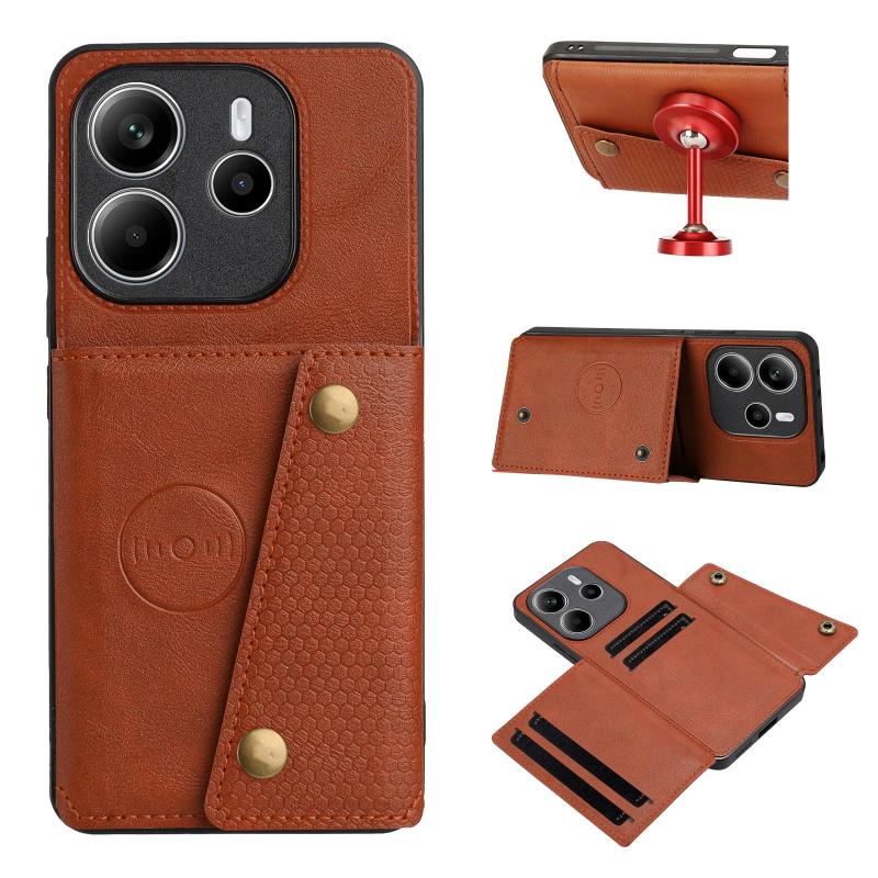 For Redmi Note 14 4G 163.25mm Double Buckle Card Slots Magnetic Phone Case(Brown)