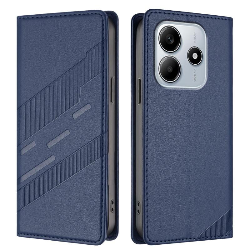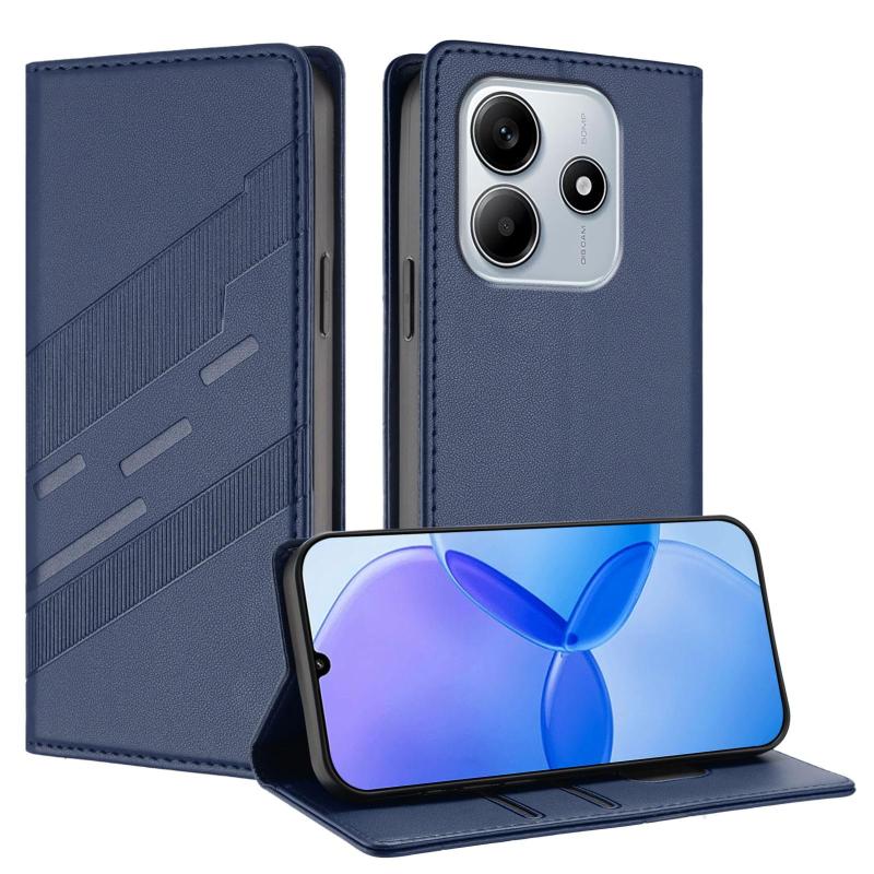 For Redmi Note 14 4G 163.25mm Embossed Multi-functional Wallet Retro Leather Phone Case(Dark Blue)