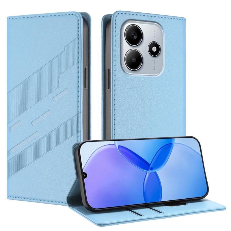 For Redmi Note 14 4G 163.25mm Embossed Multi-functional Wallet Retro Leather Phone Case(Light Blue)