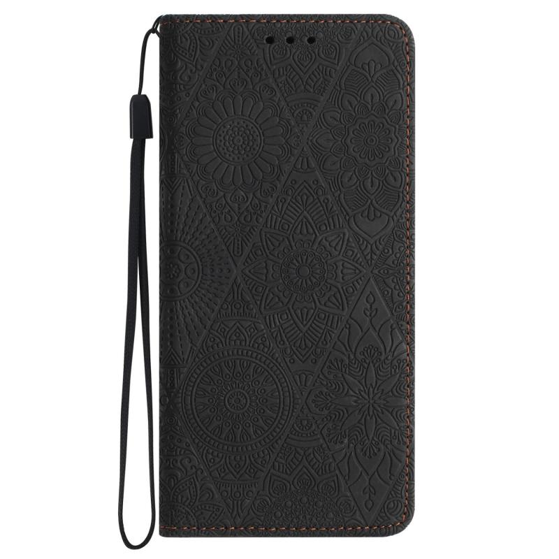 For Redmi Note 14 4G 163.25mm Ethnic Embossed Adsorption Leather Phone Case(Black)