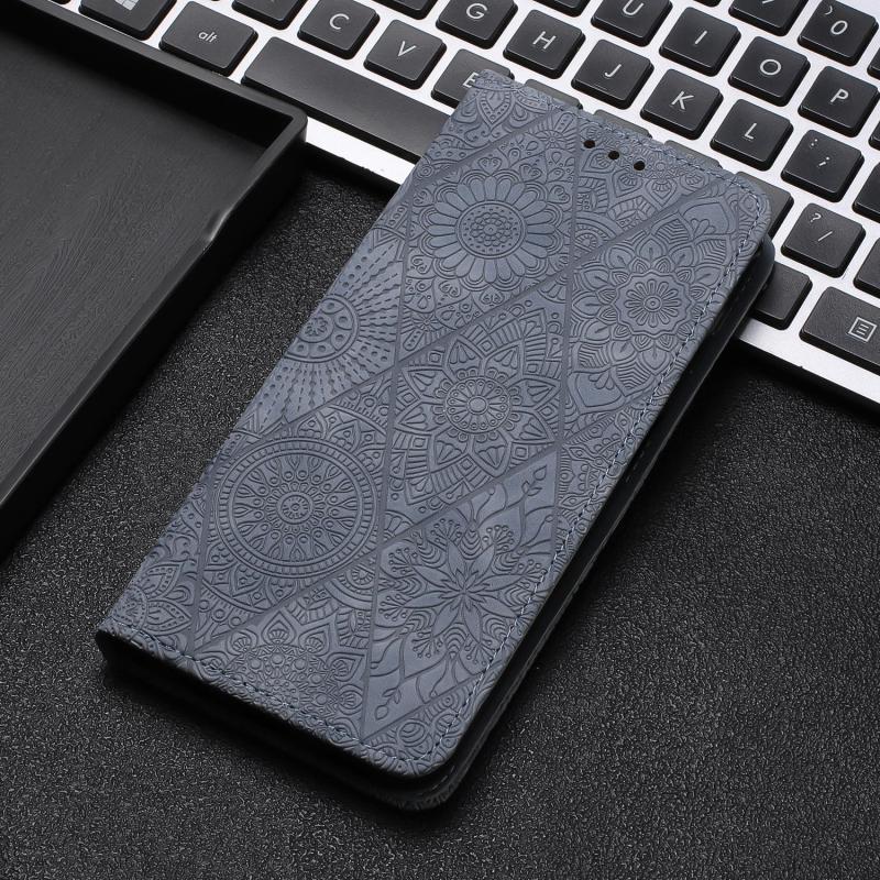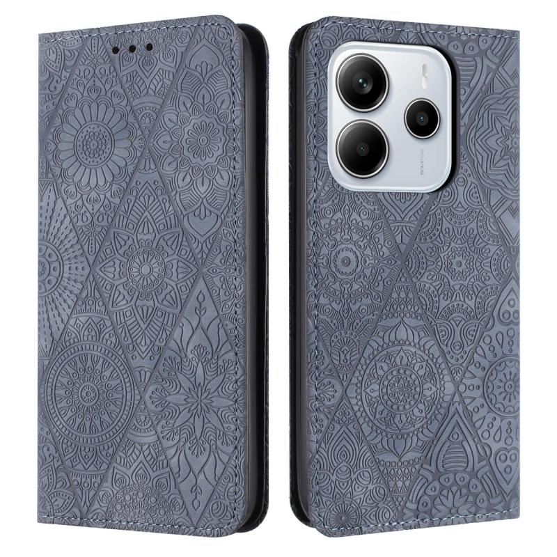 For Redmi Note 14 4G 163.25mm Ethnic Embossed Adsorption Leather Phone Case(Grey)