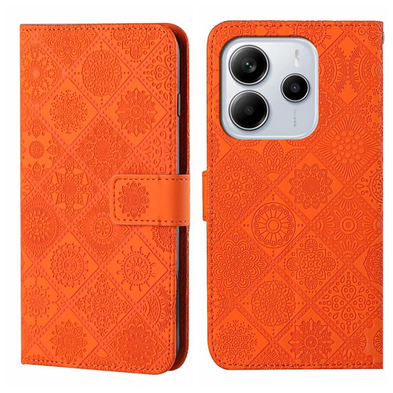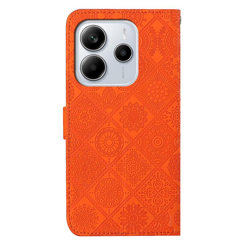 For Redmi Note 14 4G 163.25mm Ethnic Style Embossed Pattern Leather Phone Case(Orange)