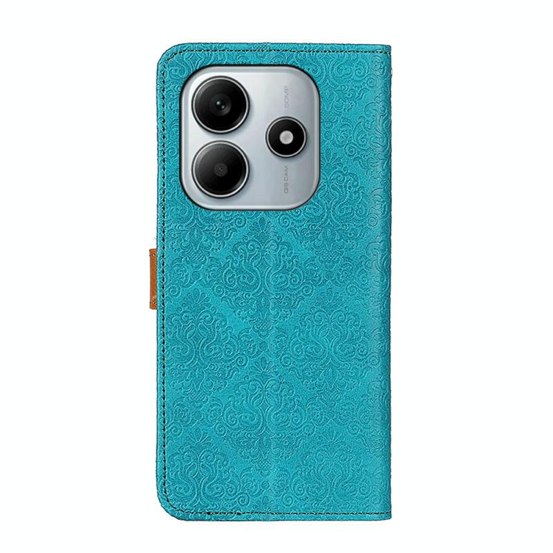 For Redmi Note 14 4G 163.25mm European Floral Embossed Leather Phone Case(Blue)