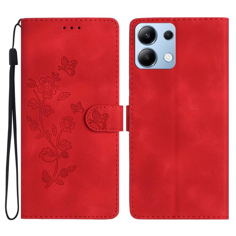 For Redmi Note 14 4G 163.25mm Flower Butterfly Embossing Pattern Leather Phone Case(Red)