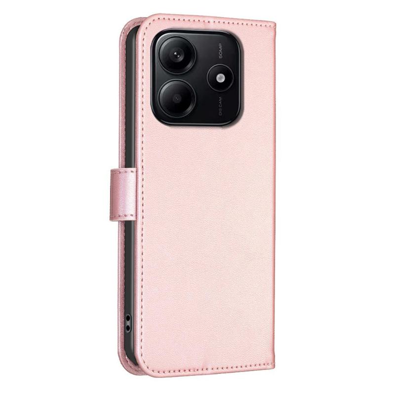For Redmi Note 14 4G 163.25mm Four-leaf Embossed Leather Phone Case(Pink)