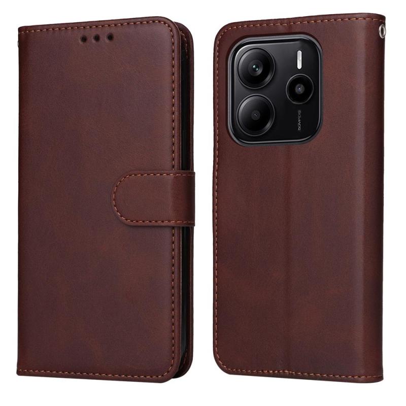 For Redmi Note 14 4G 163.25mm Global Classic Calf Texture Flip Leather Phone Case(Brown)