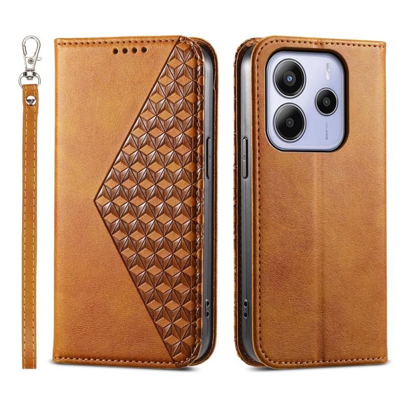 For Redmi Note 14 4G 163.25mm Global Cubic Grid Calf Texture Magnetic Leather Phone Case(Yellow)
