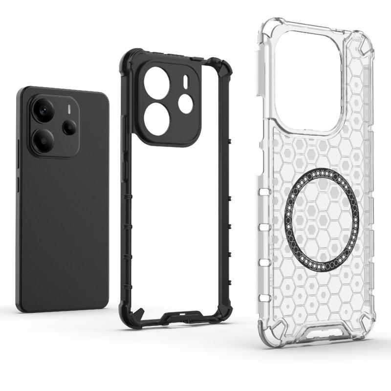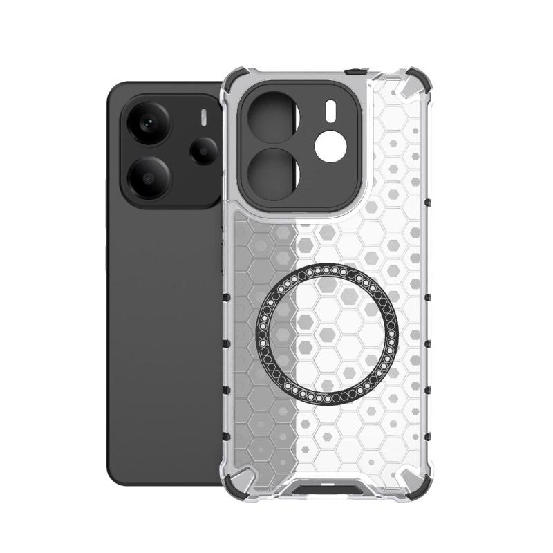 For Redmi Note 14 4G 163.25mm Global Honeycomb Magnetic Ring Shockproof Phone Case(White)