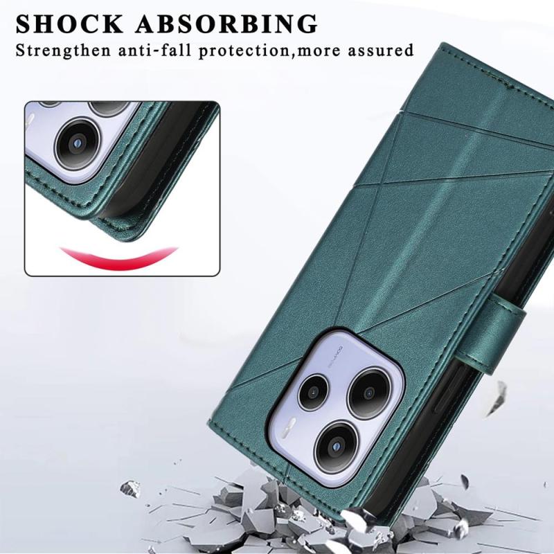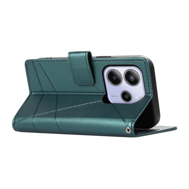For Redmi Note 14 4G 163.25mm Global PU Genuine Leather Texture Embossed Line Phone Case(Green)