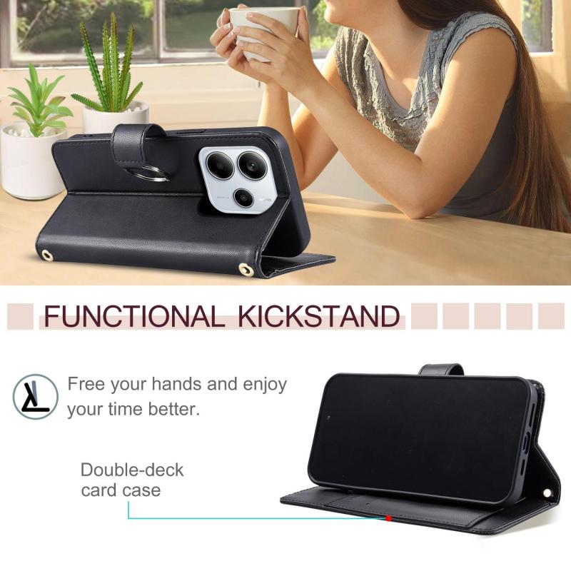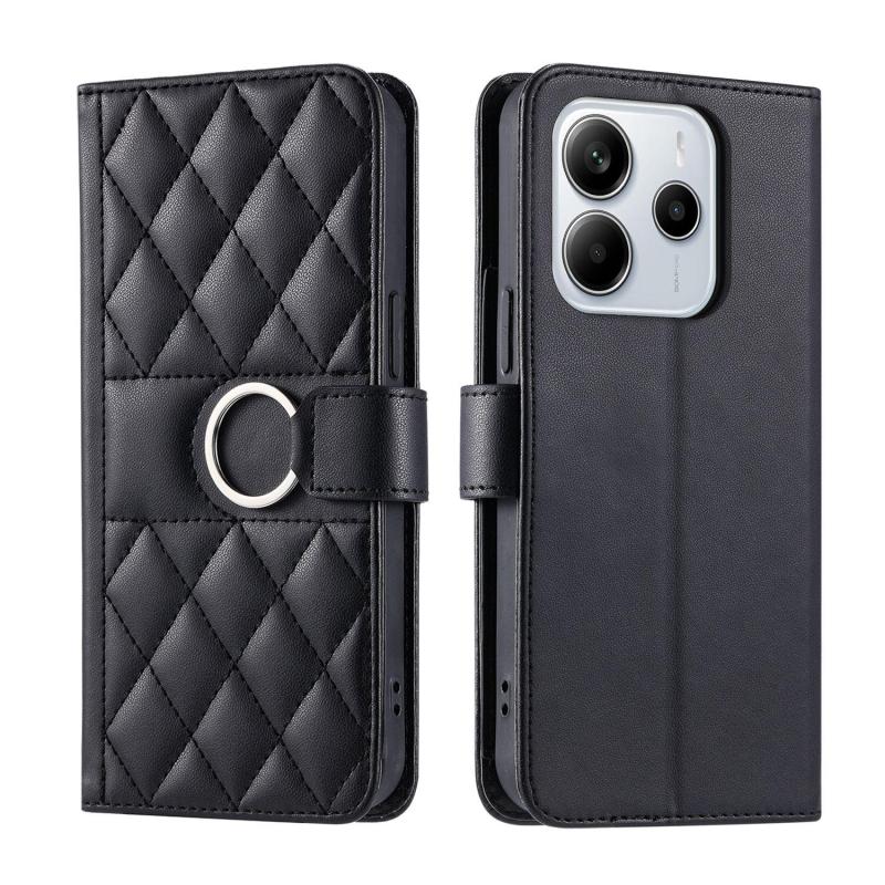 For Redmi Note 14 4G 163.25mm Global Ring Buckle Rhombic Leather Phone Case(Black)