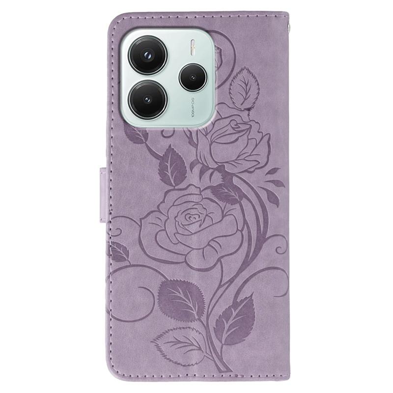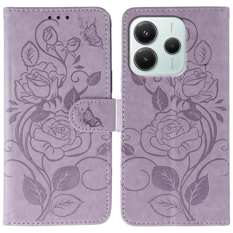 For Redmi Note 14 4G 163.25mm Global Rose Butterfly Embossed Leather Phone Case(Purple)